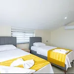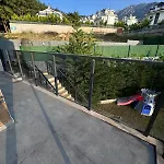Die 4-Zimmer- Villa Kosar Eskiomerler verfügt über eine Terrasse mit Aussicht auf den Garten sowie einen Swimmingpool.